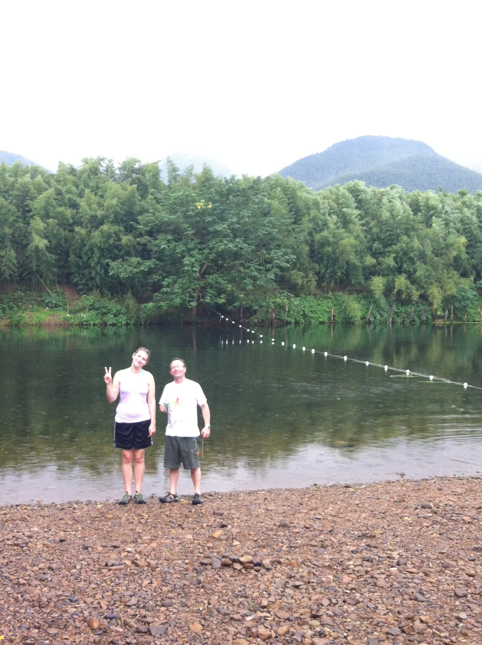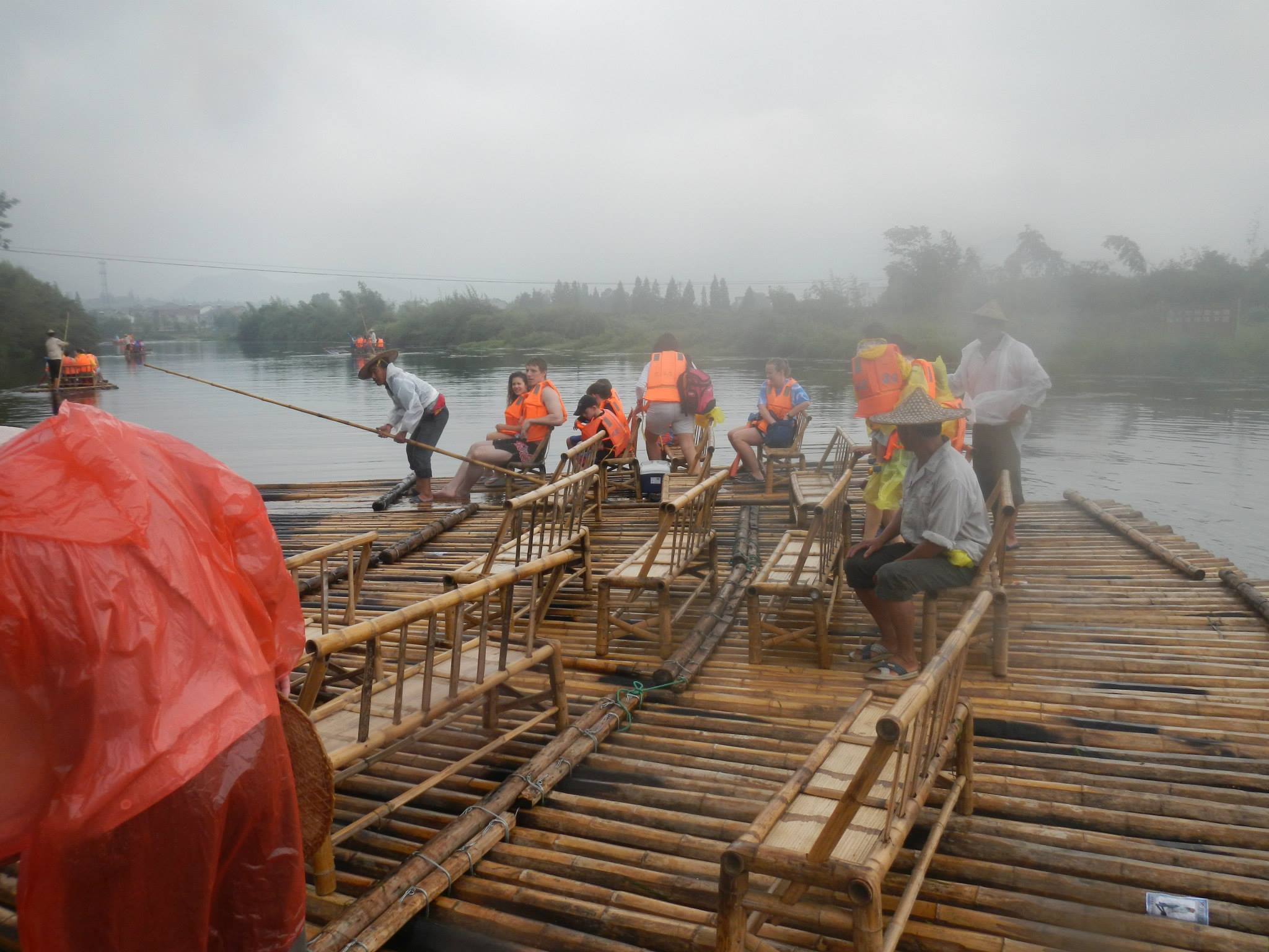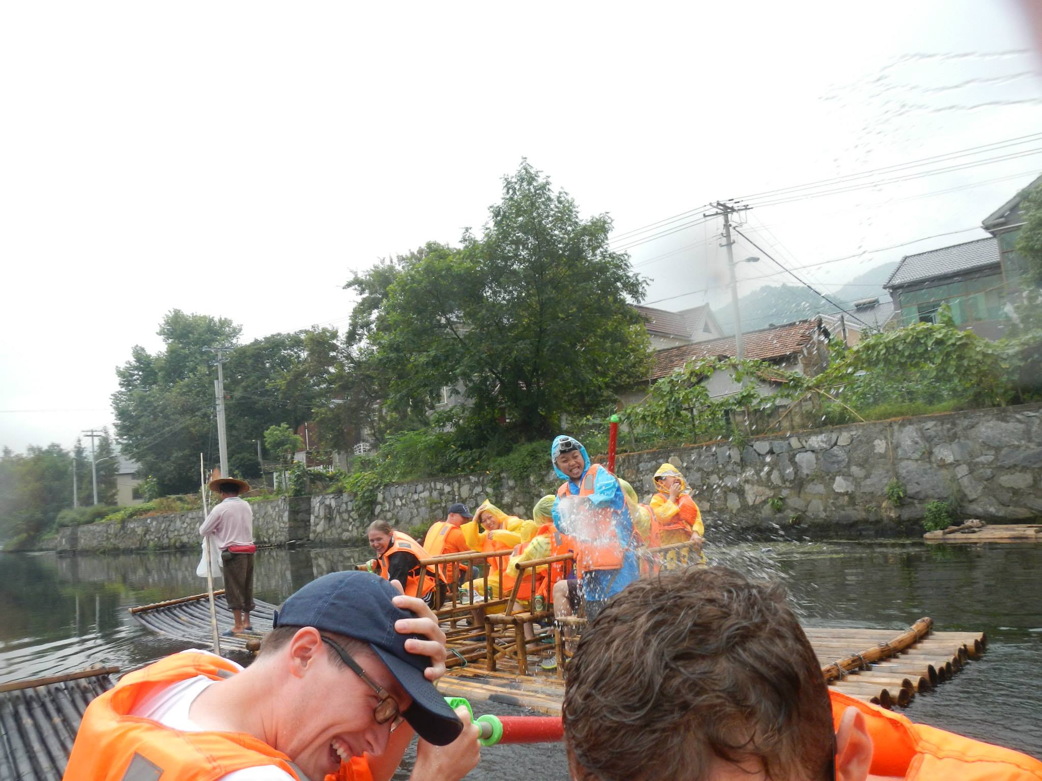 On Saturday we were scheduled to travel to Hangzhou, China to raft down the Shuangxi river. The weather was dreary when we awoke on Saturday morning, and Angela was even contemplating bailing as she was not feeling 100%. We both decided to go anyway, even though it was raining. The bus ride took us out of the Shanghai city limits, which was a first. The countryside was not very picturesque for many miles, but eventually we saw some actual nature out the window.