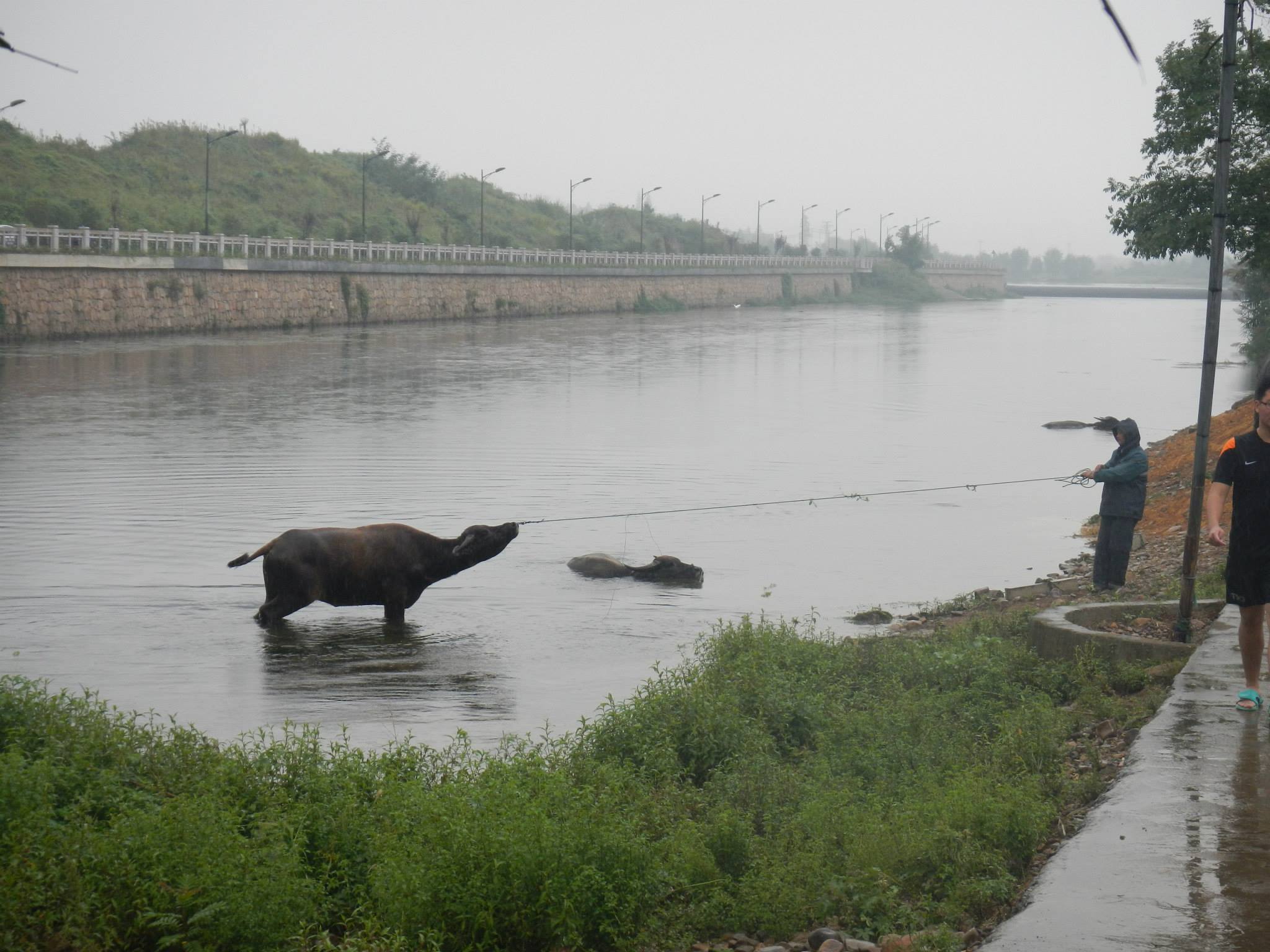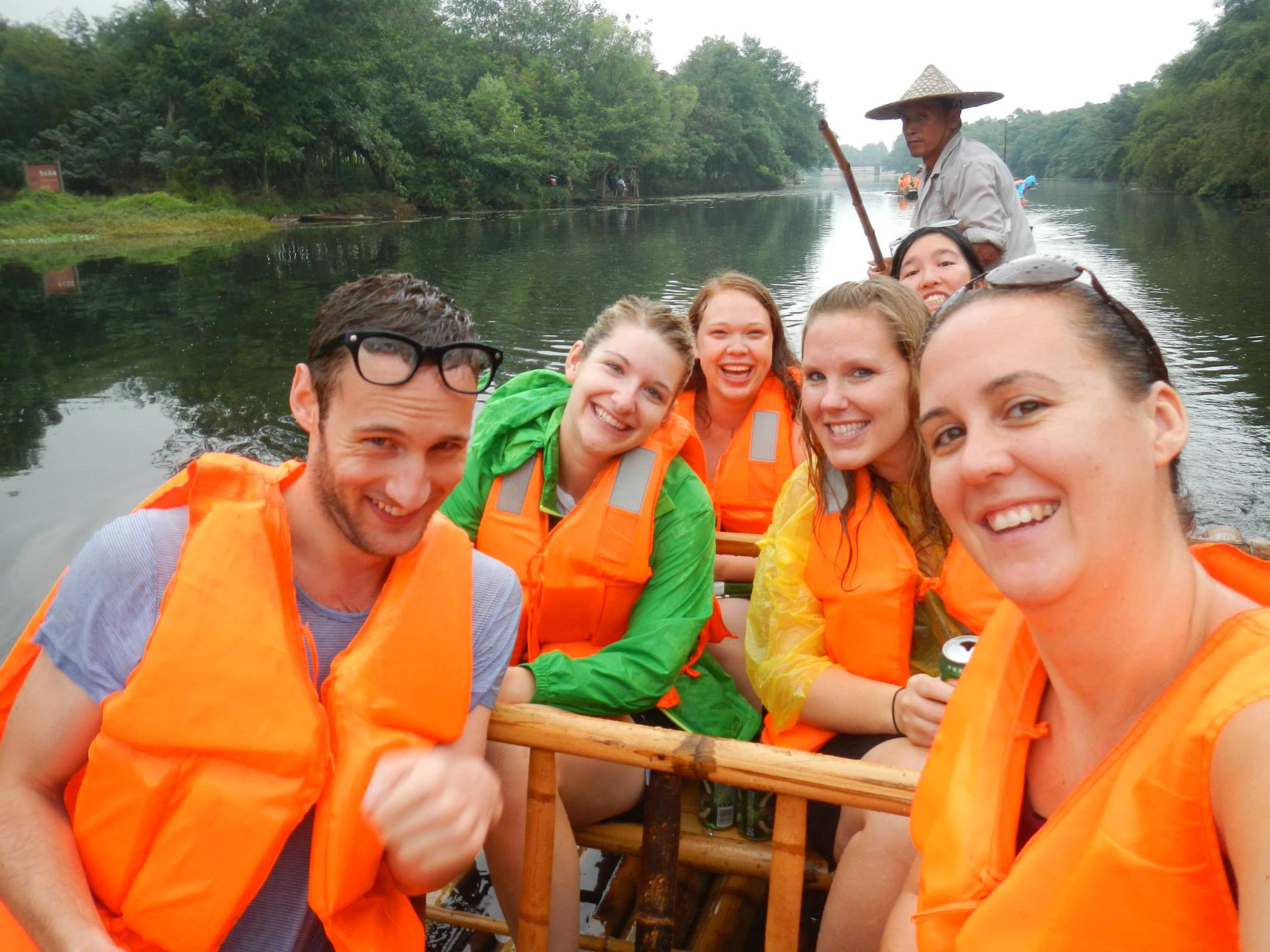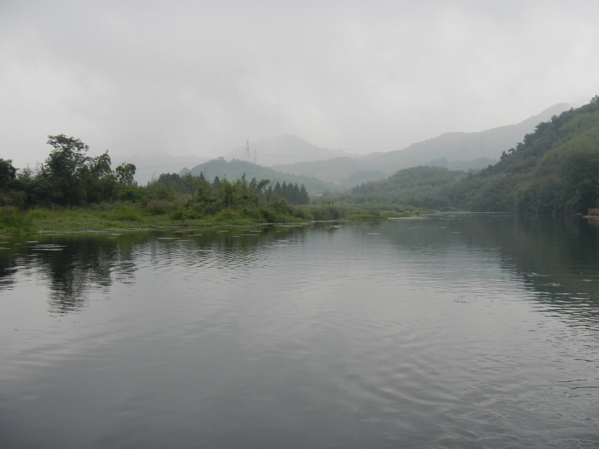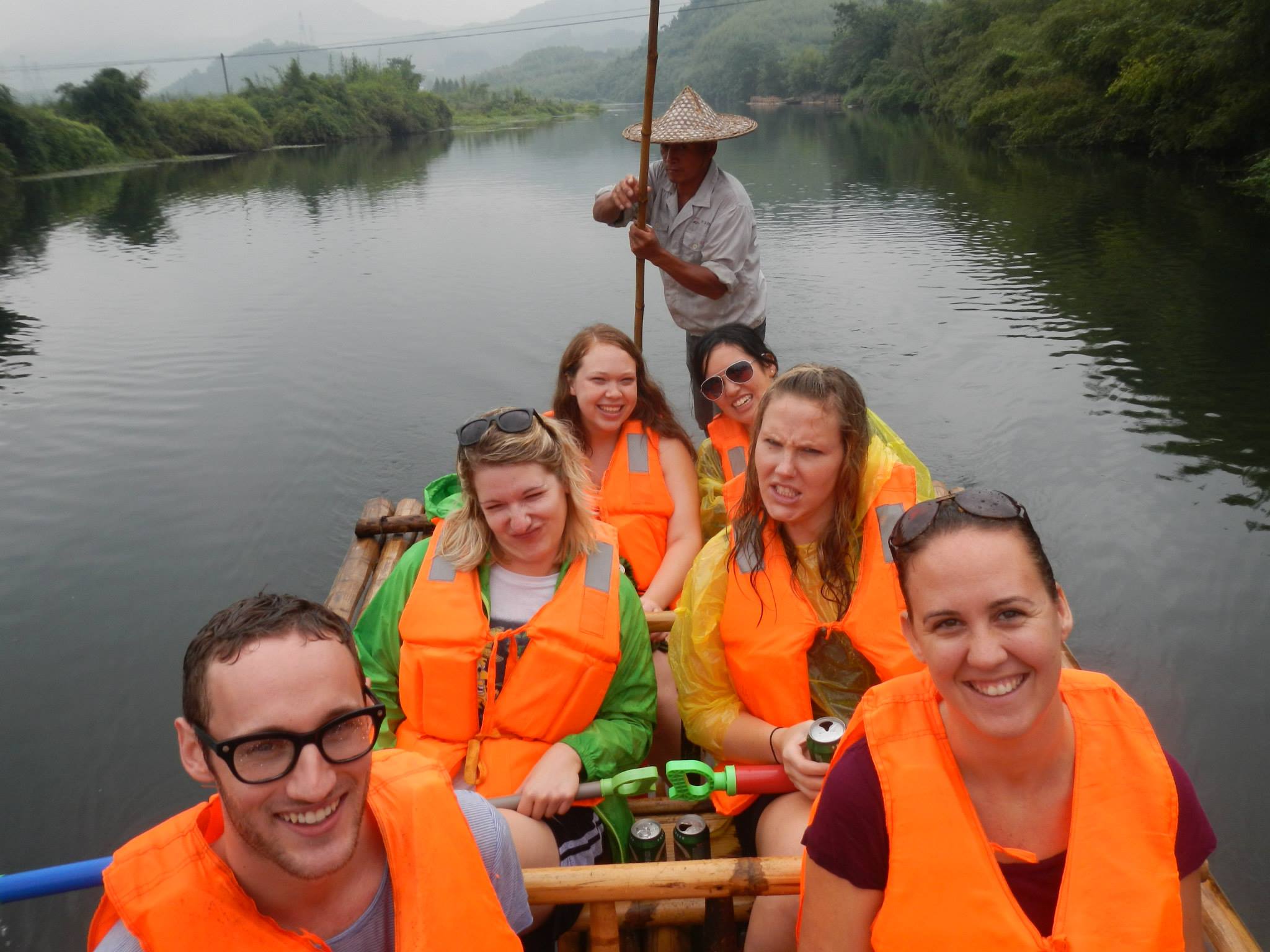 On Saturday we were scheduled to travel to Hangzhou, China to raft down the Shuangxi river. The weather was dreary when we awoke on Saturday morning, and Angela was even contemplating bailing as she was not feeling 100%. We both decided to go anyway, even though it was raining. The bus ride took us out of the Shanghai city limits, which was a first. The countryside was not very picturesque for many miles, but eventually we saw some actual nature out the window.