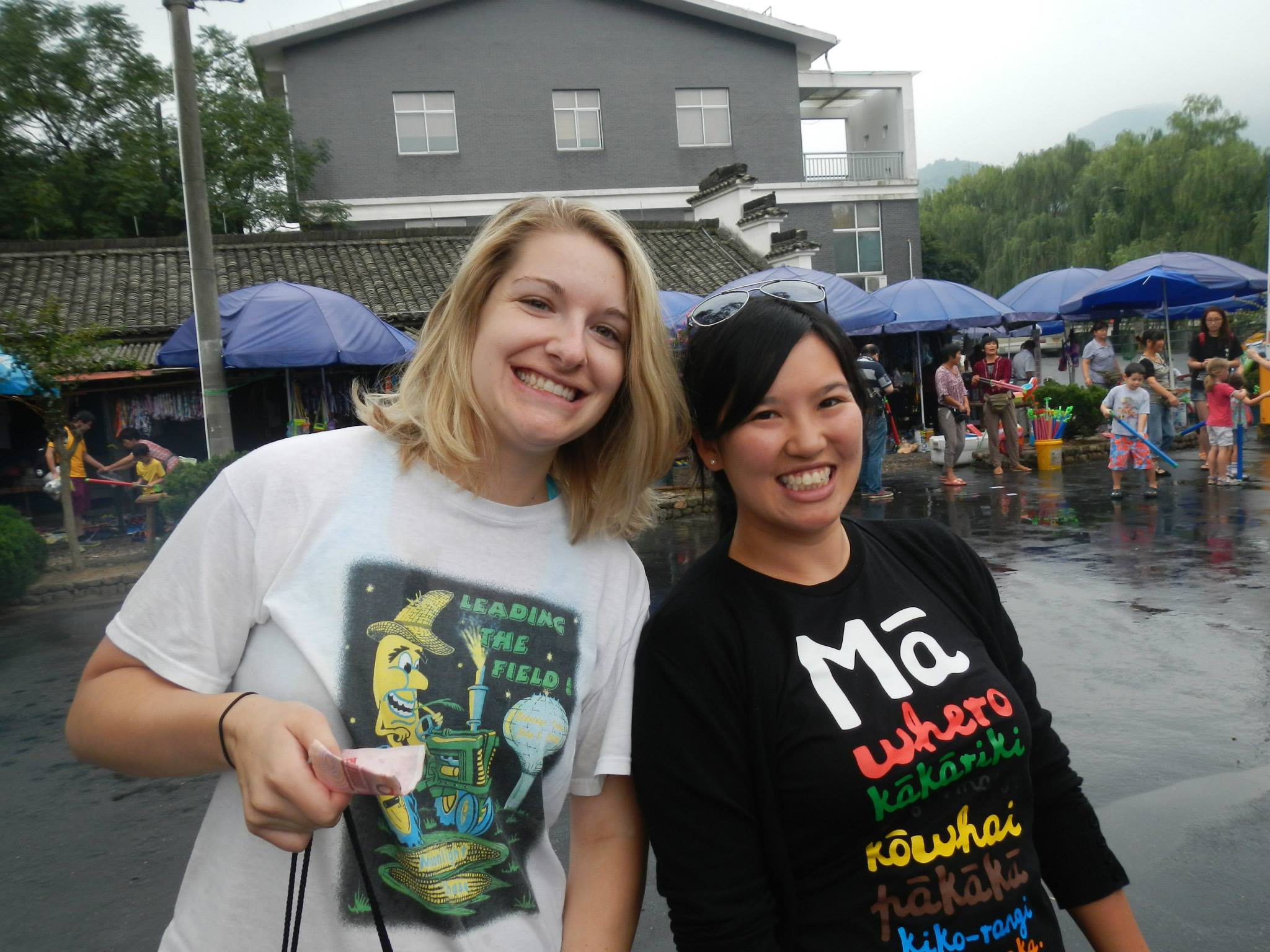 This weekend was an exceptionally eventful weekend for us Iowans in China. On Friday Angela and I had musical pit rehearsal after school, so we did not get home until a little before 6:00 PM. We went out to a great local dumpling restaurant just down the street with a big group of friends, and even got one basket of dumplings for free, as the owner seemed to be enjoying us. Afterwards, we wandered into the park right next to our apartment complex. There is social dancing in this park every single night, and Angela and I have been here a few times before. On Friday night, we took turns dancing with one another, and I even got to dance with an older Chinese woman named Ms. Lee. Her English was very good, and she told us she taught Chinese. One of the new teachers got her phone number so that we might call her for lessons someday.